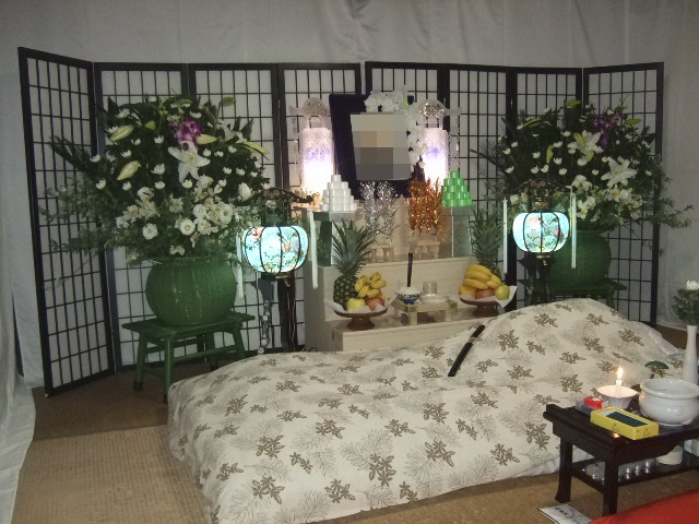お部屋の片付けと、ご安置が同時進行する。 ドライアイスでの